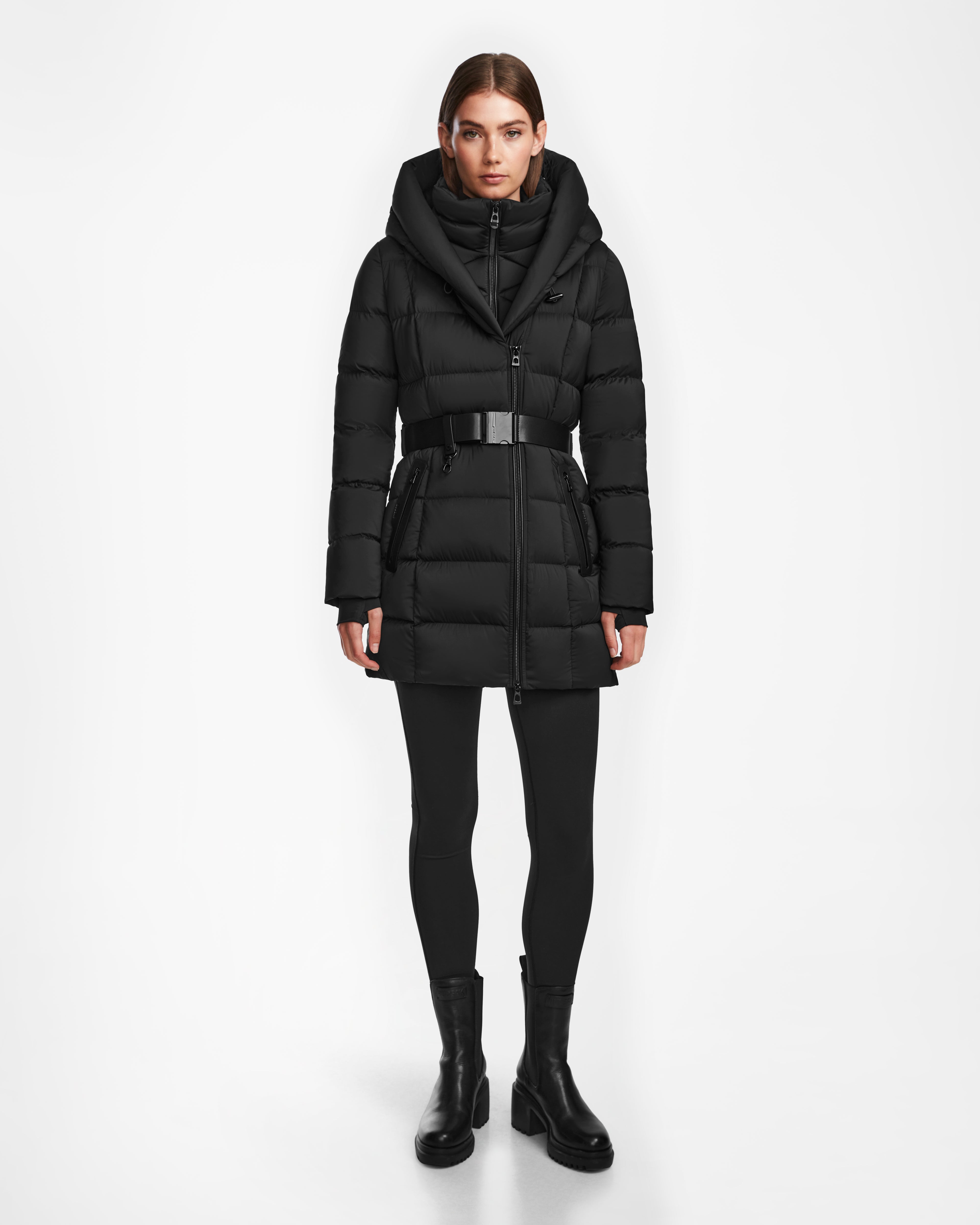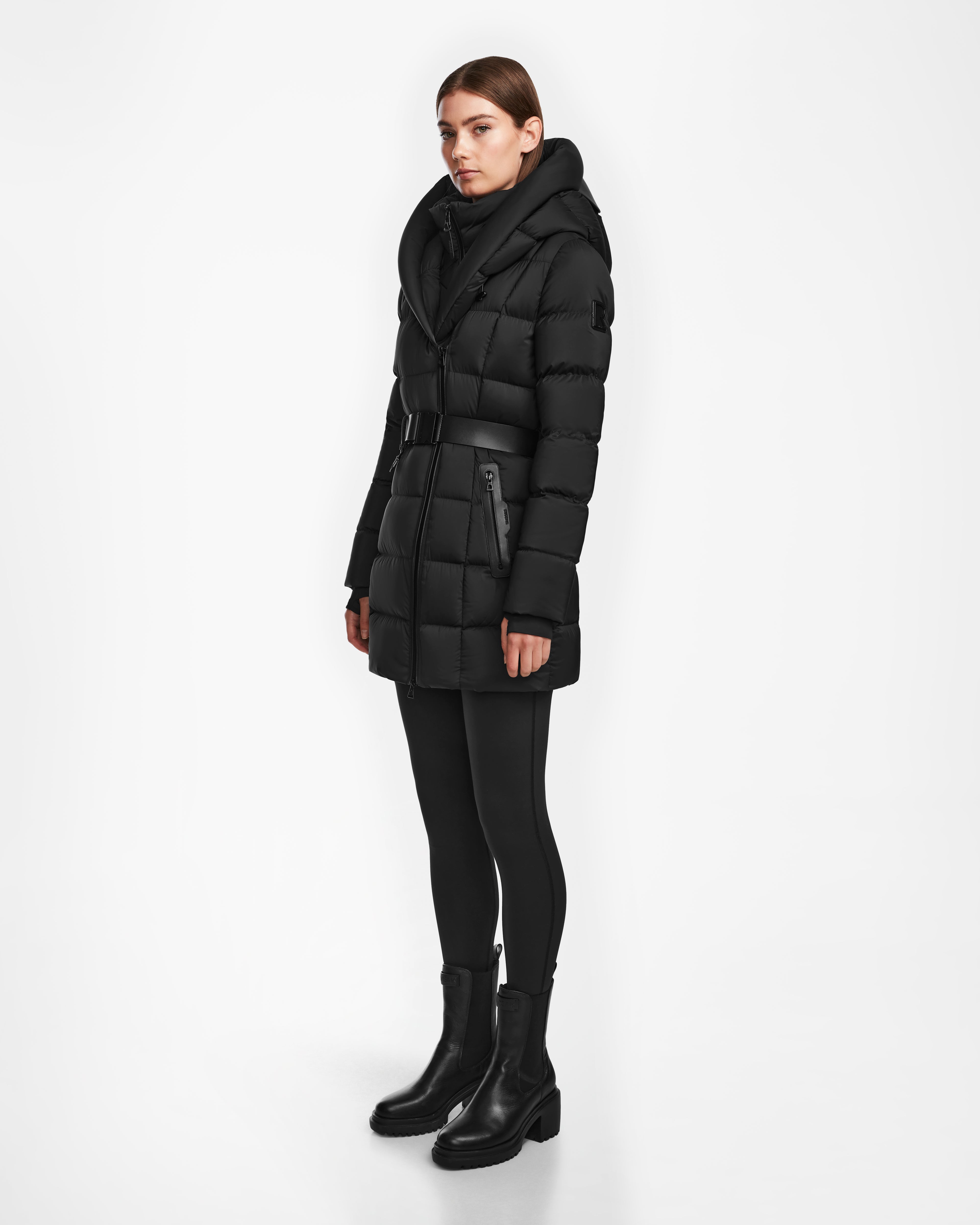 The TAYLOR M by RUDSAK is a fitted quilted down puffer jacket for women designed in a matte fabric that lightweight, breathable, and water-repellent. It features a removable vegan leather belt that allows you to cinch the waist and further accentuate its flattering form. High-loft RDS certified down fill provides warmth as the weather turns cold. Its deep hood features a toggle closure to create a snugger fit. High-gloss waterproof zippers add extra weather-resistance, while neoprene storm cuffs help seal in warmth. Comfortable and crafted to perform, this women's winter down jacket is sure to be your everyday essential during the colder months.